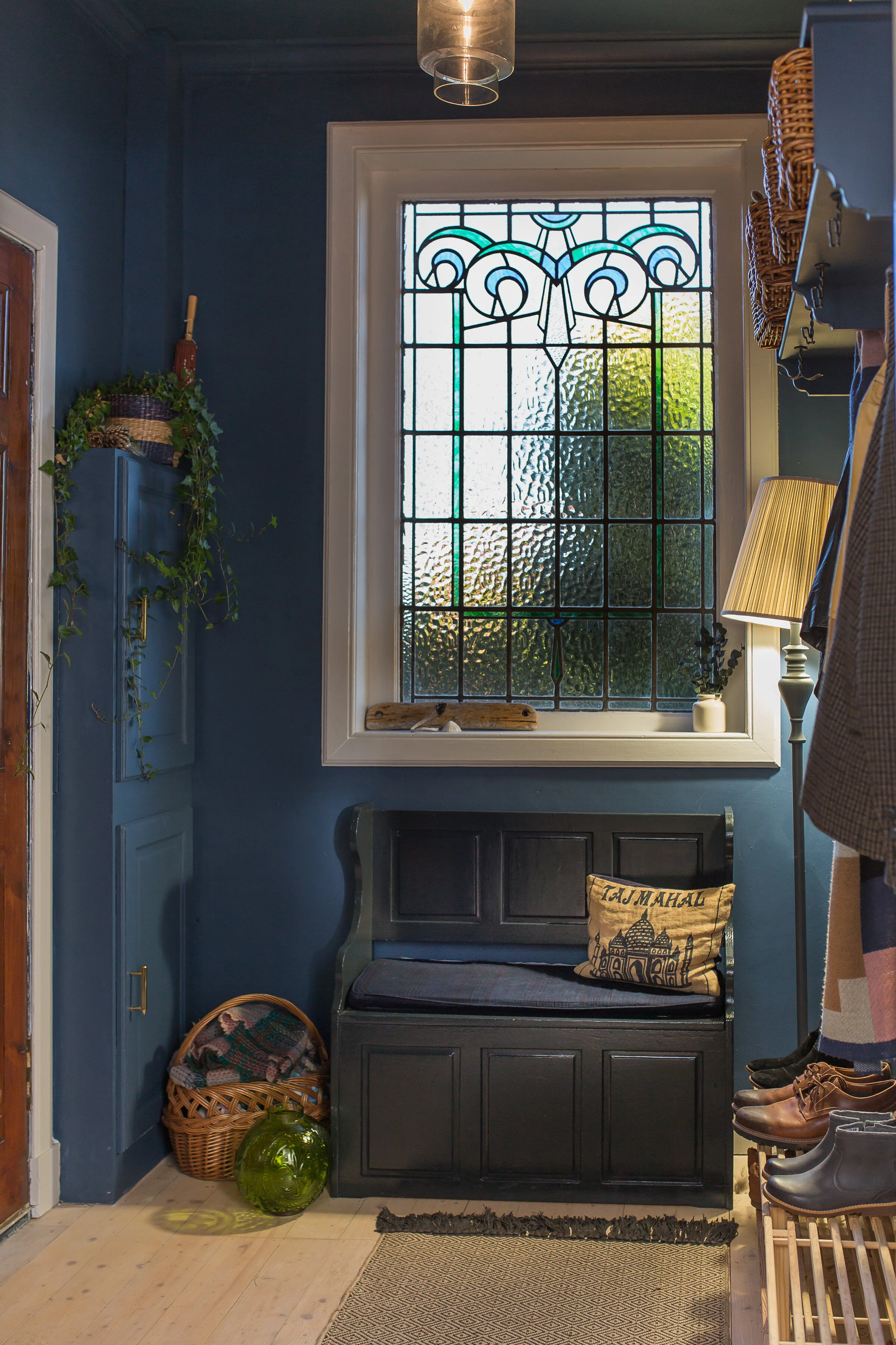 The vestibule of this 1930’s bungalow was naturally dark - but for the light from the stunning stained glassed window - and cluttered with the usual chaos in a house full of people and pets! It was also the main entryway so making a statement was important to the owners, as was a feeling of connection with the rest of the home.