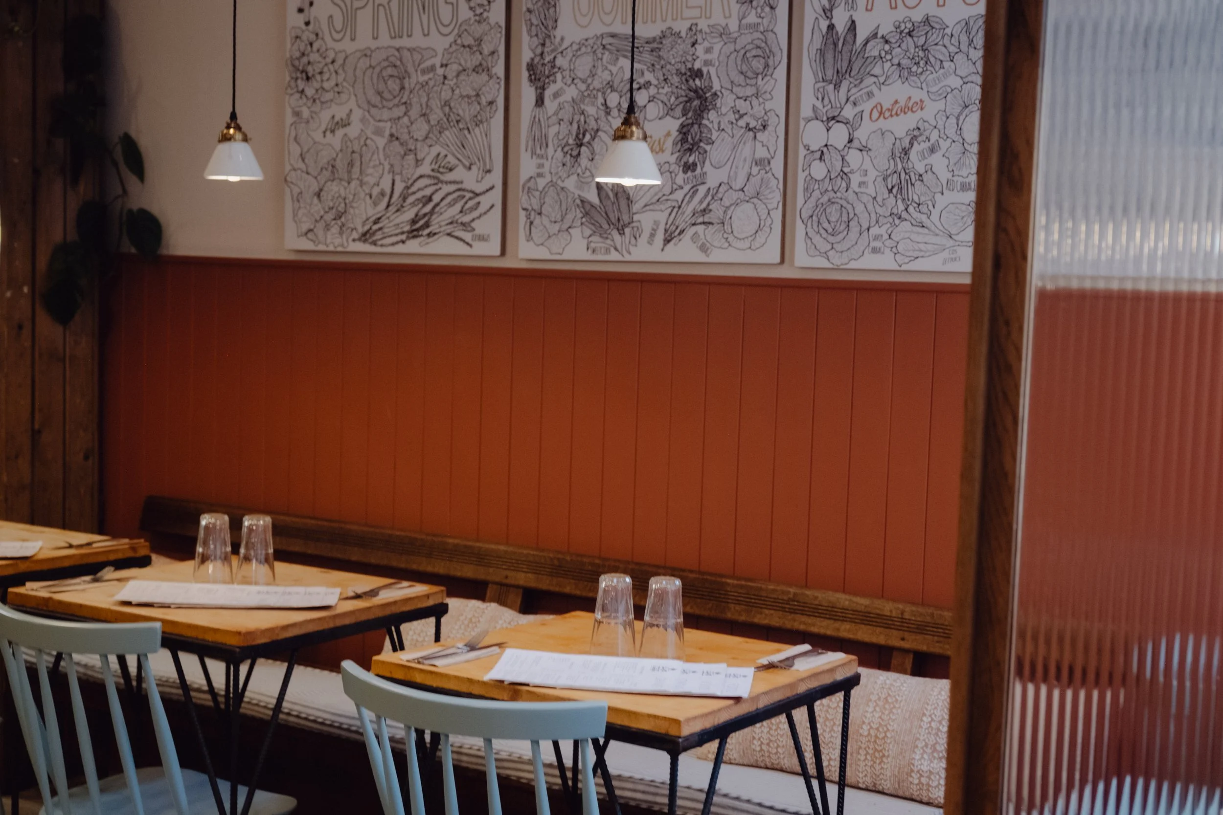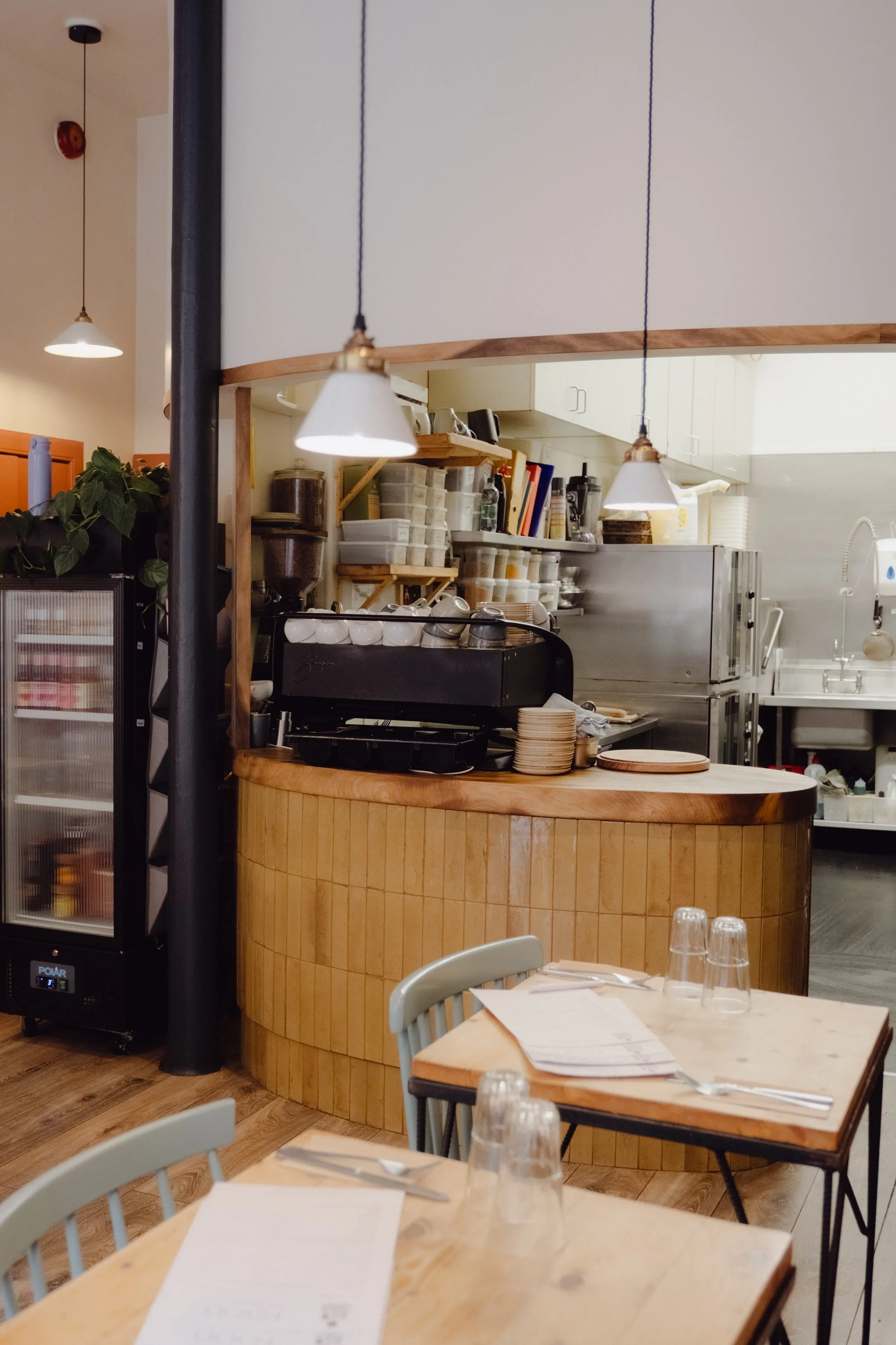 The brief: create a design that would help the cafe's interiors better reflect the quality of the food; help the space feel warmer and inviting; separate the kitchen and dining space, and improve the entrance to be more comfortable on a windy Edinburgh day!